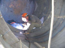 除氧頭改造生產(chǎn)現(xiàn)場(chǎng)(采用:蓄熱填料液氣網(wǎng))  除氧器制造現(xiàn)場(chǎng)(材質(zhì):不銹鋼)