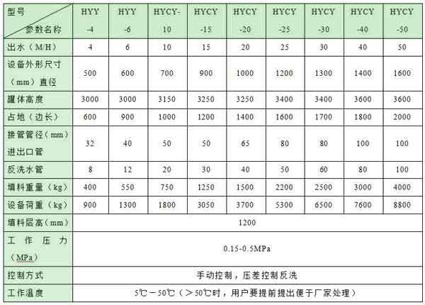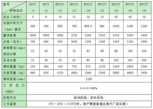 (一)全自動控制類型海綿鐵除氧器規(guī)格和技術(shù)參數(shù)表